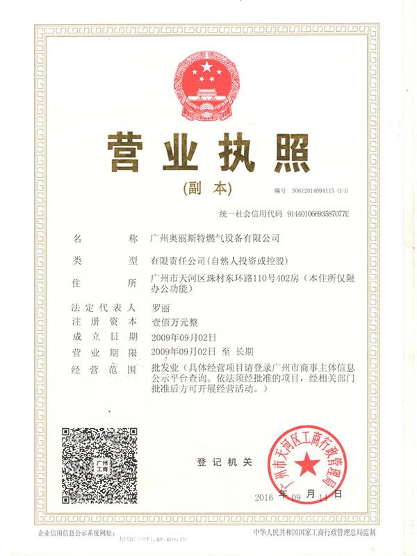 2017年度代理證 (廣州奧麗斯特燃氣設備有限公司)副本